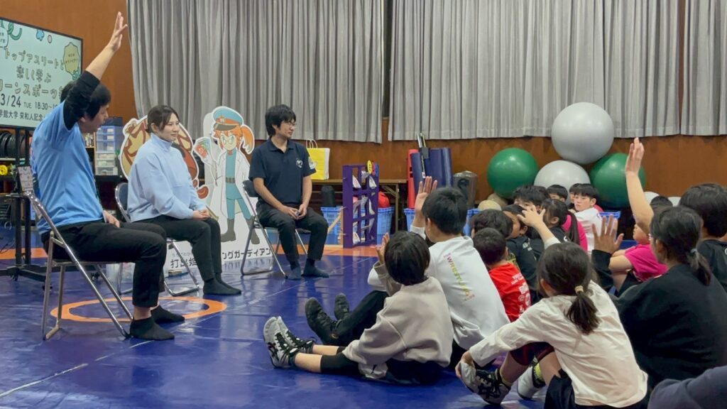 自分たちが日々の競技生活の中で感じていることや、実際に気をつけていることを、子どもたちの前で自分の言葉で伝えてくれました。